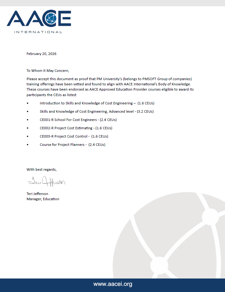 - Базовые знания и навыки стоимостного инжиниринга - 1.6 CEUs